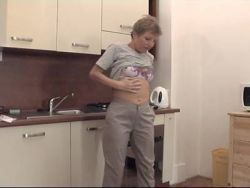 Rothaarige Amateurin massiert ihre geile Muschi in der Küche