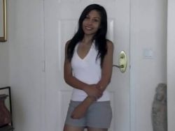Ein scharfes Asiateen vögelt sich mit einem Dildo