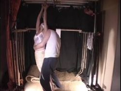 Das japanische Girl wird vor der Cam gefesselt und aufgehängt