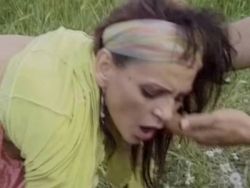 Nach dem Ficken wird die Tussi von den Hengsten mit Sperma vollgespritzt