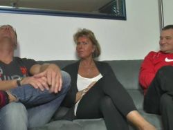 Die alte Tussi und der junge Typ ficken leidenschaftlich auf dem Sofa