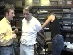 Junge Blondine umschließt hammergeil am alten Kollegen