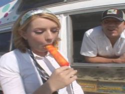 Unschuldige schlanke Schlampe lutscht einen Schwanz