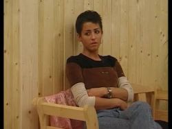 Blondgefärbtes Weib besorgt es sich ungeniert vor einer Fremden selbst