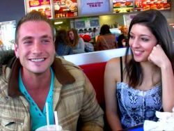 Bildhübsche notgeile Hure lutscht einen Schwanz