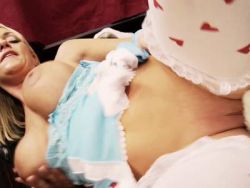 Unschuldige Frau mit dicken Milchtüten wird gebumst