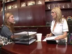 Zwei geile lesbische Luder werden gerammelt und schlecken feuchte Mösen
