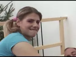 Der erfahrene Rammler fickt der unerfahrenen Tussi heftig die rasierte Muschi durch