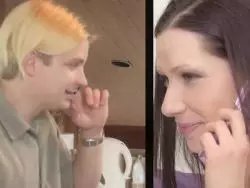 Blondes Luder mit falschen Möpsen lässt sich geil rammeln