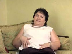 Hausfrau mit smarten Möpsen masturbiert mit Gurke