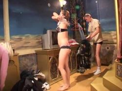 Mit einem langen Sextoy wird das Weib zum Kommen genötigt