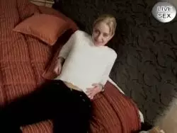 Die scharfe blonde Tussi liebkost den scharfen Riemen beim Gruppenfick