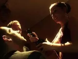 Hübsche erfahrene Schlampe lutscht zwei Schwänze